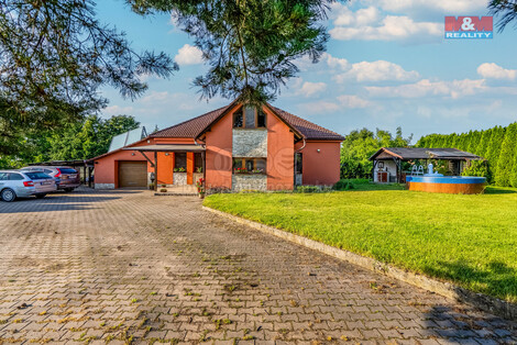 Nabízíme k prodeji výjimečný rodinný dům v klidné části obce Chvojenec, ideálně umístěný mezi Pardubicemi a Hradcem Králové. Tento dvoupodlažní cihlový dům nabízí užitnou plochu 214 m2. V přízemí se nachází veranda, vstupní chodba, kuchyně, obývací pokoj s krbem (s rozvody do celého domu), ložnicí, pracovnou, technickou místností, WC a koupelnou. V patře je zatím otevřený prostor, ale je možno zde vybudovat až 3 pokoje, dále je zde další koupelna. Na pozemku o rozloze 1712 m2 naleznete velkou zahradu s bazénem, pergolou, domkem na nářadí a vyhřívanou boudu pro psy. Součástí nemovitosti je také garáž s elektrickými vraty a studna. Dům je vybaven moderními technologiemi, jako jsou solární panely, kondenzační kotel a zabezpečovací zařízení s venkovní kamerou. Nízké náklady na bydlení zajišťuje energetická třída B a zásobník na dešťovou vodu. Ideální místo pro rodinné bydlení v blízkosti přírody a městské infrastruktury. Ráda se s vám potkám na prohlídce!