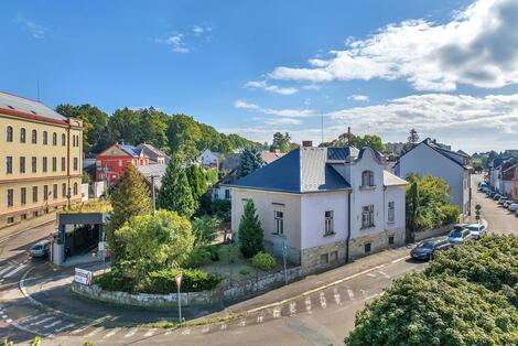 K prodeji prvorepubliková vila z roku 1912 v obci Žamberk, stojící poblíž náměstí, na nároží ulic Nádražní a 28. října. Po rekonstrukci vila nabídne ideální místo pro bydlení i podnikání. Hlavní vstup je orientován do ulice Nádražní, přístup je řešen také z ulice U Divadla. Stavba nabízí zajímavé dispoziční uspořádání, jedno nadzemní podlaží a částečně využité podkroví. Dům je celopodsklepený, disponuje zastavěnou plochou 175 m2 a velkorysou užitnou plochou 320 m2. Vilu obklopuje zahrada o výměře 380 m2. Interiéru dominuje vzdušná vstupní hala s širokým schodištěm. V přízemí najdeme 4 prostorné pokoje a příslušenství v podobě komory a toalety. Rovněž z přízemí je vstup do jedné zahrady. V podkroví se nachází 2 pokoje, kuchyňský kout, koupelna s toaletou a další půdní prostory vhodné k vestavbě. Dům je napojen na veřejný vodovod, kanalizaci a elektřinu. Centrální vytápění domu zajišťoval kotel na tuhá paliva a krbová kamna. Parkování je k dispozici na obecních plochách u domu. Poblíž je pošta, městský úřad, školy, autobusové nádraží, obchody a veškeré služby. Doporučuji prohlídku vzhledem k lokalitě a ojedinělé nabídce podobného charakteru.