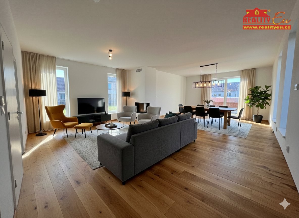 Nabízíme k prodeji moderní novostavbu rodinného domu o dispozici 5+kk, užitné ploše 125 m2 a s prostornou terasu o velikosti téměř 40 m2. Dům se nachází v klidné obci Dříteč, v atraktivním pásu mezi Hradcem Králové a Pardubicemi, s výbornou dopravní dostupností: • 15 min do centra Pardubic • 20 min do centra Hradce Králové • 8 min na dálnici D11 Pozemek o výměře cca 700 m2 nabízí příjemné soukromí i dostatek prostoru pro zahradu, bazén nebo další rodinné využití. Hlavní přednosti domu • Energetická třída A - nízké provozní náklady • FVE + tepelné čerpadlo pro úsporný provoz • Trojskla a kvalitní stavební provedení • Příprava na krbovou vložku (lze snadno doplnit) • Dvě kompletně vybavené koupelny - není potřeba dalších zásahů • Dřevěné podlahy v obytných částech • Novostavba bez nutnosti rekonstrukcí - stačí nainstalovat kuchyň a můžete bydlet Dispozice (5+kk, 125 m2) • Prostorný obývací pokoj s přípravou na kuchyňskou linku a vstupem na terasu • Čtyři samostatné ložnice • Dvě koupelny s toaletou • Technická a úložná místnost • Velká venkovní terasa orientovaná pro ideální odpolední/večerní světlo Lokalita Dříteč Oblíbená a vyhledávaná lokalita mezi dvěma krajskými městy. V místě najdete: • školku, • restaurace, • dětská hřiště, • cyklostezky a sportovní vyžití v okolní přírodě. Dříteč je známá také blízkostí Golf Resortu Kunětická Hora, který zvyšuje atraktivitu lokality. Shrnutí Moderní úsporný dům v energetické třídě A, s kvalitním provedením, technologiemi a velkou terasou. Minimální vstupní investice (pouze kuchyň), ihned obyvatelné. Skvělá volba pro rodinu, která hledá klidné bydlení s rychlým spojením do Hradce i Pardubic.