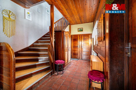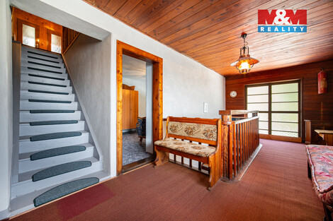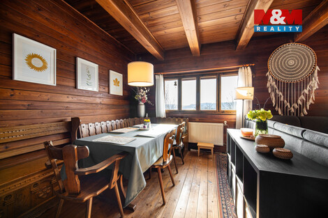 Nabízíme k prodeji roubenku v obci Žampach, stavbu z 30. let 20. století, která je v původním udržovaném stavu ale v průběhu let prošla řadou rekonstrukcí. Celková plocha pozemků činí 5 508 m2, z toho 431 m2 tvoří zastavěná plocha a nádvoří a zbytek tvoří zahrada. Pozemky jsou dle územního plánu určeny k zástavbě, takže zahrada nabízí i investiční potenciál - je možné oddělit část a využít ji jako stavební pozemek (dle regulativů obce). Na pozemku je bazén a zahradní domek, zahrada je převážně rovinatá. Roubenka má užitnou plochu cca 365 m2 a je dispozičně rozdělená na 3 obytná podlaží + suterén. Přízemí: velký obývací pokoj + 2 pokoje, kuchyň se zázemím, komory, koupelna a 2× WC. 1. patro: 5 pokojů, koupelna, 2× WC. 2. patro: kuchyň s jídelnou, 3 pokoje, koupelna, 2× WC. Suterén: kotelna, garáž, dílny a sklad. Vytápění nemovitosti zajišťuje kotel na tuhá paliva a plynový kotel. Vhodné pro bydlení, rekreaci i podnikání. Doporučujeme prohlídku, více informací u makléře.